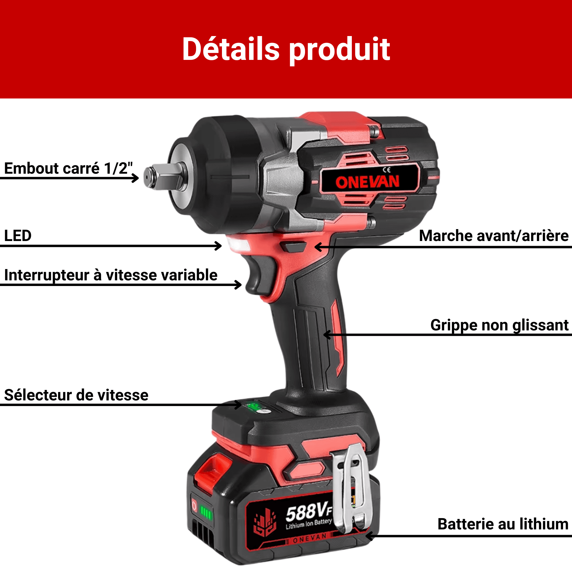 19 avis pour Clé à Chocs Sans Fil 1000 Nm – Boulonneuse 18V Haute Puissance – Batterie 3000mAh Inclus – Force de Desserrage Extrême