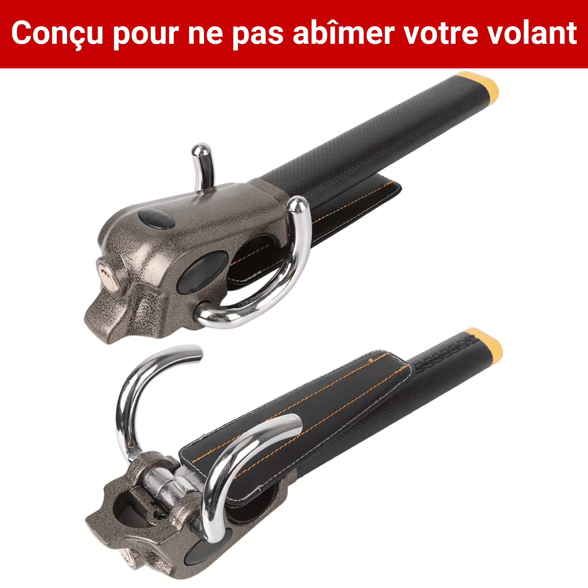 Antivol Volant à Verrouillage Rapide – Crochet de Sécurité Renforcé Universel – Protection Auto Anti-Vol avec 3 Clés Incluses