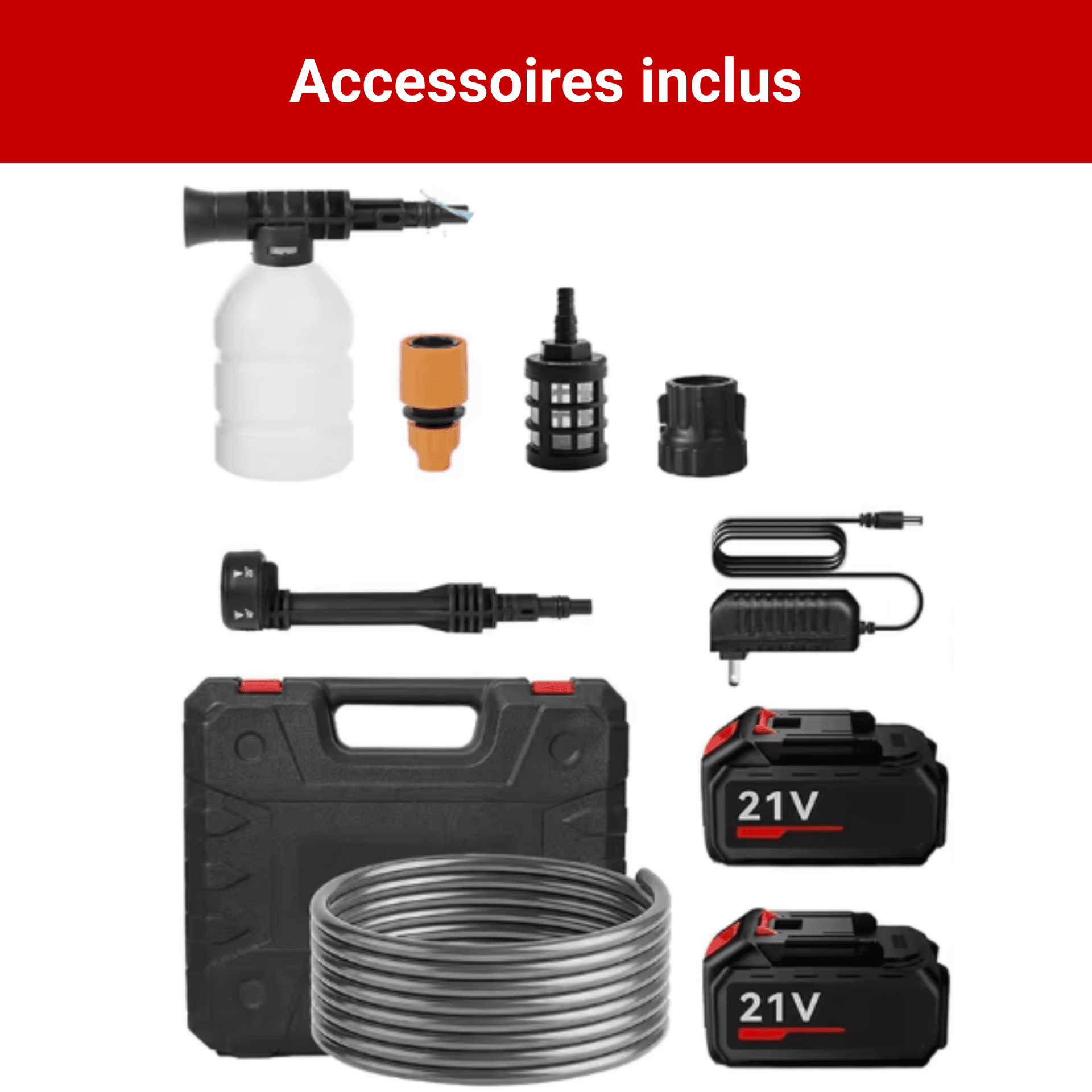 Cela fonctionne très bien pour laver la voiture par exemple, les batteries durent bien et une charge suffit pour laver presque deux voitures.