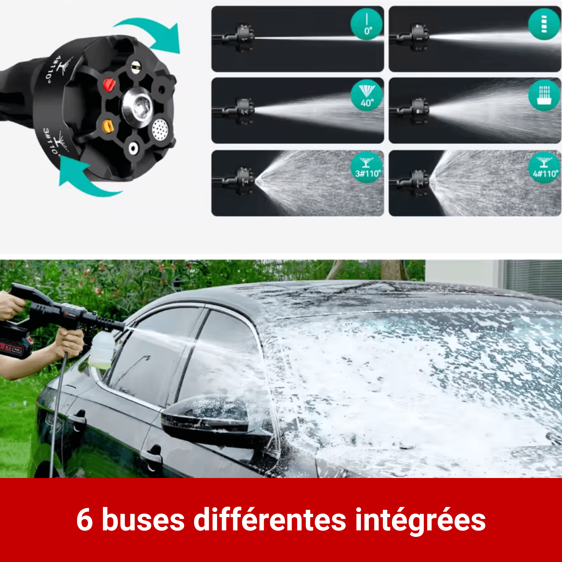 Nettoyeur Haute Pression 40 Bars Sans Fil – Batterie 3000mAh Longue Durée – 6 Buses de Précision Incluses – Lavage Auto Pro