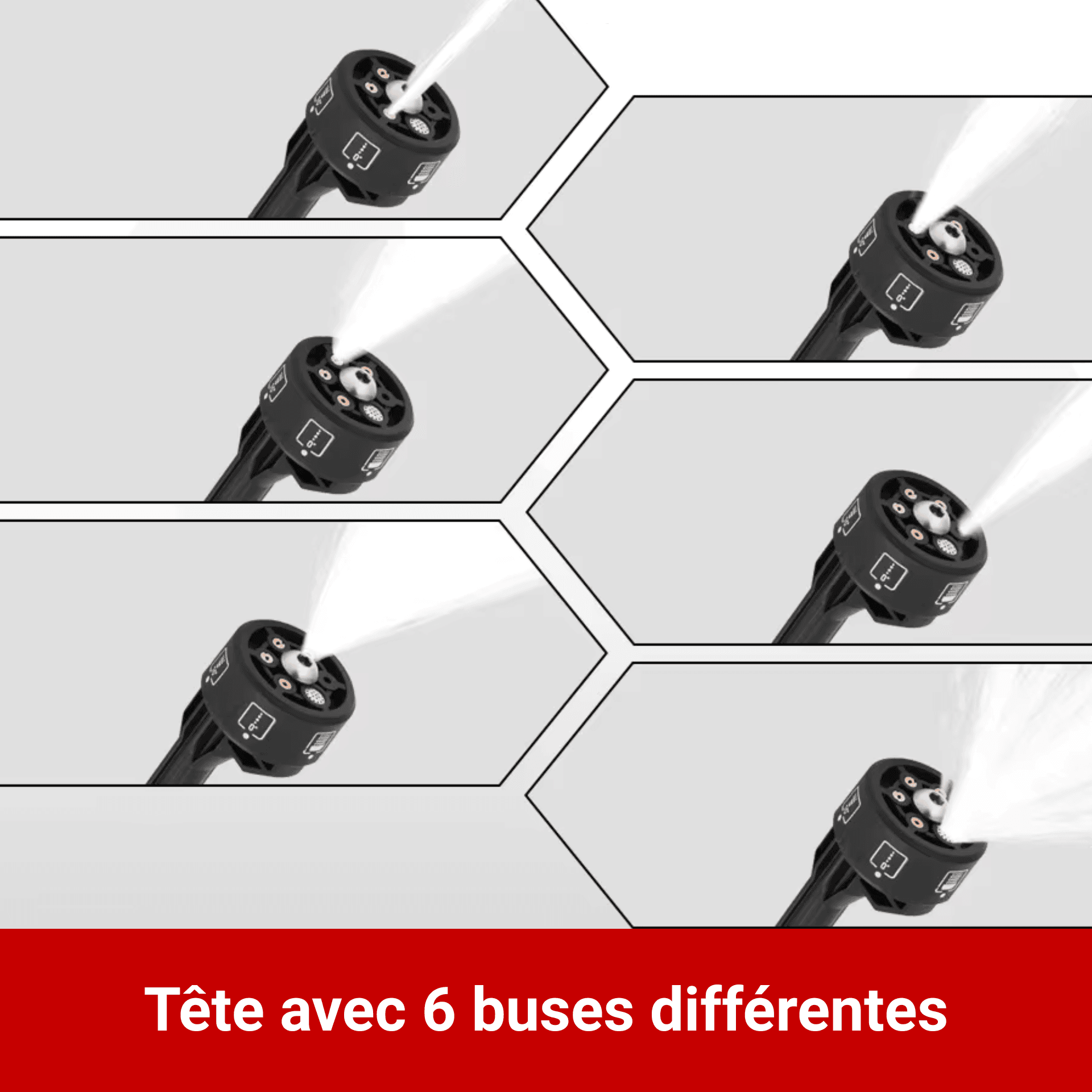 ☑️ Tête avec 6 buses intégrées